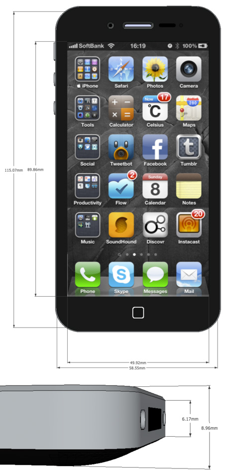Motiviert durch die erstmals am 10. April aufgeworfene Theorie (ifun berichtete) und der subtilen Bestätigung der Gerüchte durch den Mac-Afficinado John Gruber, hat Will Hains die Umgestaltung des iPhones jetzt millimetergenau skizziert und sich dabei an den folgenden vier Annahmen orientiert.