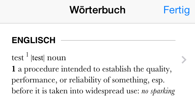 - Apples System-Wörterbuch arbeitet nun zuverlässig und erlaubt das Nachschlagen ausgewählter Begriffe.