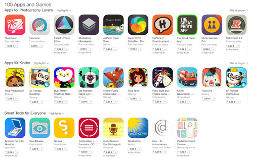 Apple hat 100 Apps und Spiele für iOS auf jeweils 99 Cent reduziert. Das ist eine Menge Holz, die erstmal gesichtet werden muss, und selbst wenn ihr sicher einige der angebotenen Apps bereits besitzt, dürfte sich hier und da noch ein Schnäppchen finden.