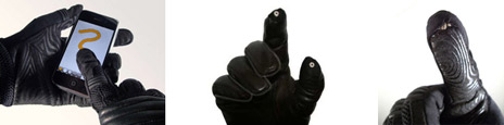 Gute Tipps wie ihr eure Leder- oder Stoff-Fingerlinge mit 10 Minuten Freizeit, ca. 30cm leitfähigen Faden und etwas Fingerspitzengefühl in ein Touchscreen-taugliches iPhone Add-On verwandelt bietet zum einen diese, auf Instructables veröffentlichte Anleitung zum anderen zeigen die beiden unten eingebetteten Youtube-Videos (Clip 1 & Clip2) das Ergebnis in Aktion.