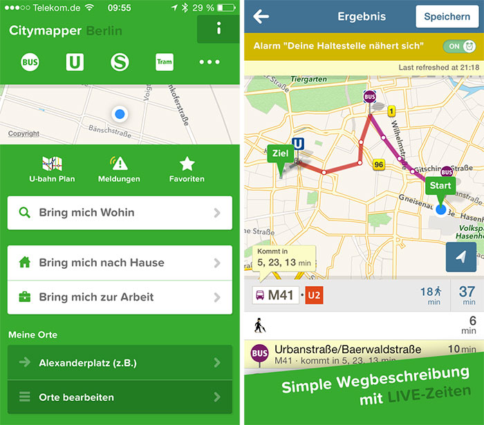 Citymapper is top notch! Ich lebe in London und benutze nichts anderes. Wenn die Berlinversion nur halb so gut ist, wäre es automatisch schon die beste ÖPNV app. Einfach nur genial.