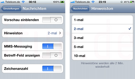- SMS-Hinweistöne können nun bis zu 10 mal wiederholt werden. Danke Miso.
