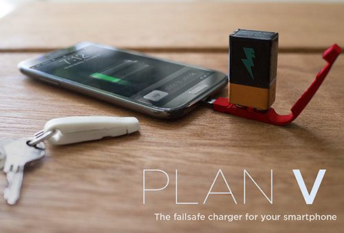 Das Kickstarter-Projekt Plan V gefällt uns. Der Schlüsselanhänger realisiert ein schlichtes Konzept: Statt auf den üblichen USB-Stecker zum Laden am Rechner oder an der Steckdose zu setzen, integriert Plan V zwei Kontakt-Anschlüsse für handelsübliche 9-Volt-Blockbatterien, mit denen sich ein komplett leeres iPhone wieder soweit aufladen lassen soll, dass immerhin das Absetzen neuer Telefonate möglich ist.