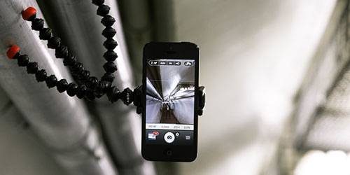 Wir haben das iPhone mit Schutzhülle in dieser Kombination verwendet. Die klassische Weise, den Gorillapod zu verwenden ist es, die beweglichen Arme um einen Gegenstand zu schlingen, um der Gesamtkonstruktion halt zu geben.