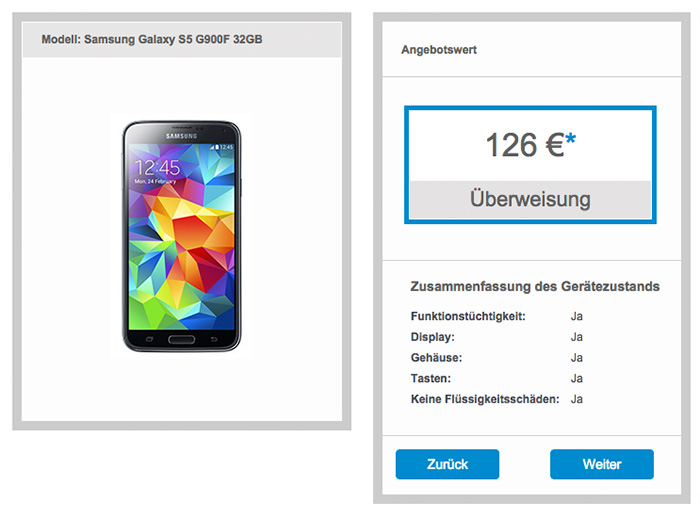 So bietet Apple (bzw. Apples Partner Brightstar) jetzt 126€ für ein funktionstüchtiges, gut erhaltenes Samsung Galaxy S5 an.