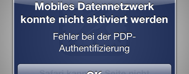 So, und auf einmal habe ich dieses Problem auch. Von einer Minute auf die andere geht kein mobiles Internet mehr und die Fehlermeldung mit der PDP-Authentifizierung erscheint. Bin in München…