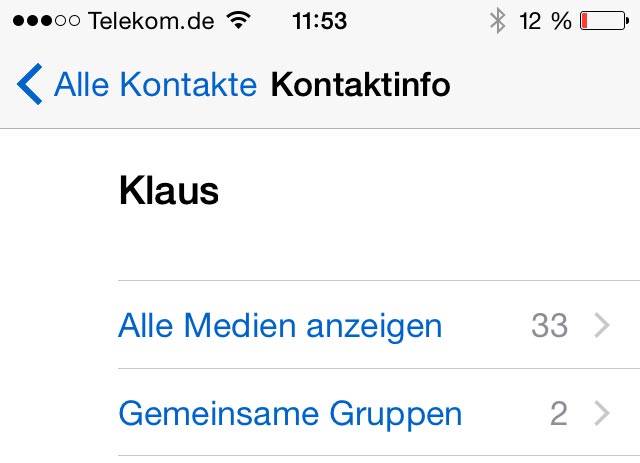 Auf diese Medienübersicht könnt ihr übrigens auch aus der Kontaktliste heraus zugreifen. Hier findet sich in der Detailansicht direkt unter dem Namen der Person ein Link zur Medienübersicht sowie die Anzahl der zugehörigen Dateien.